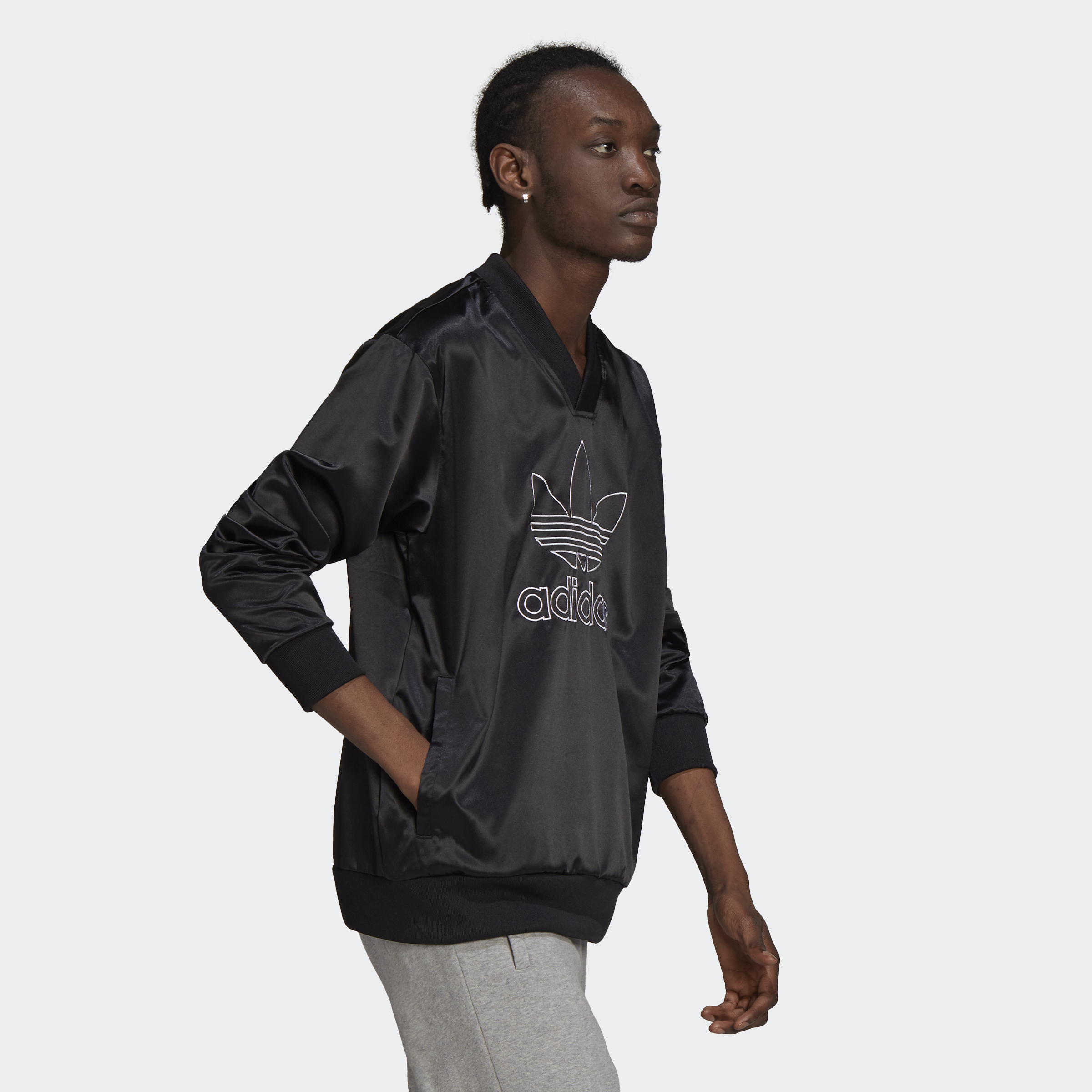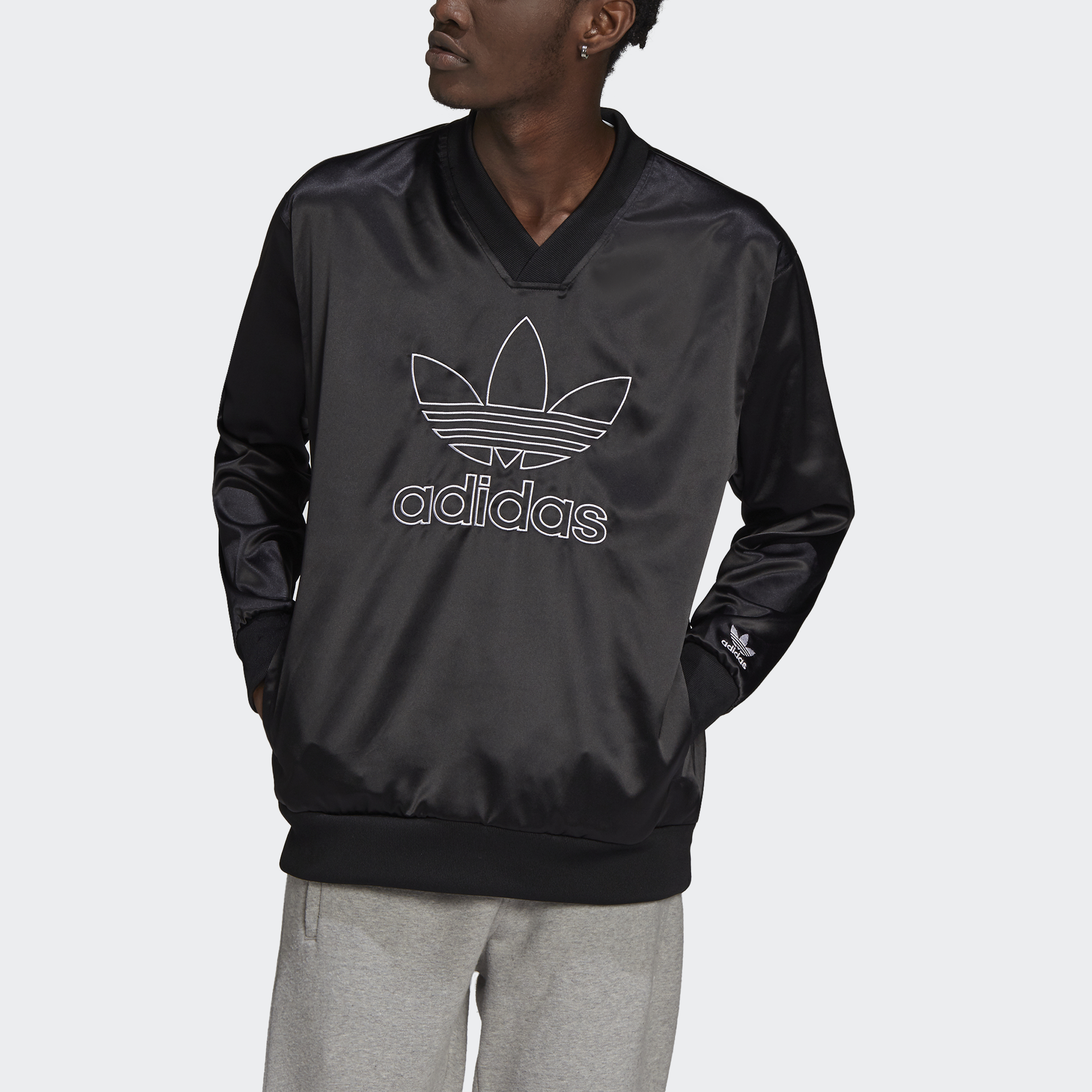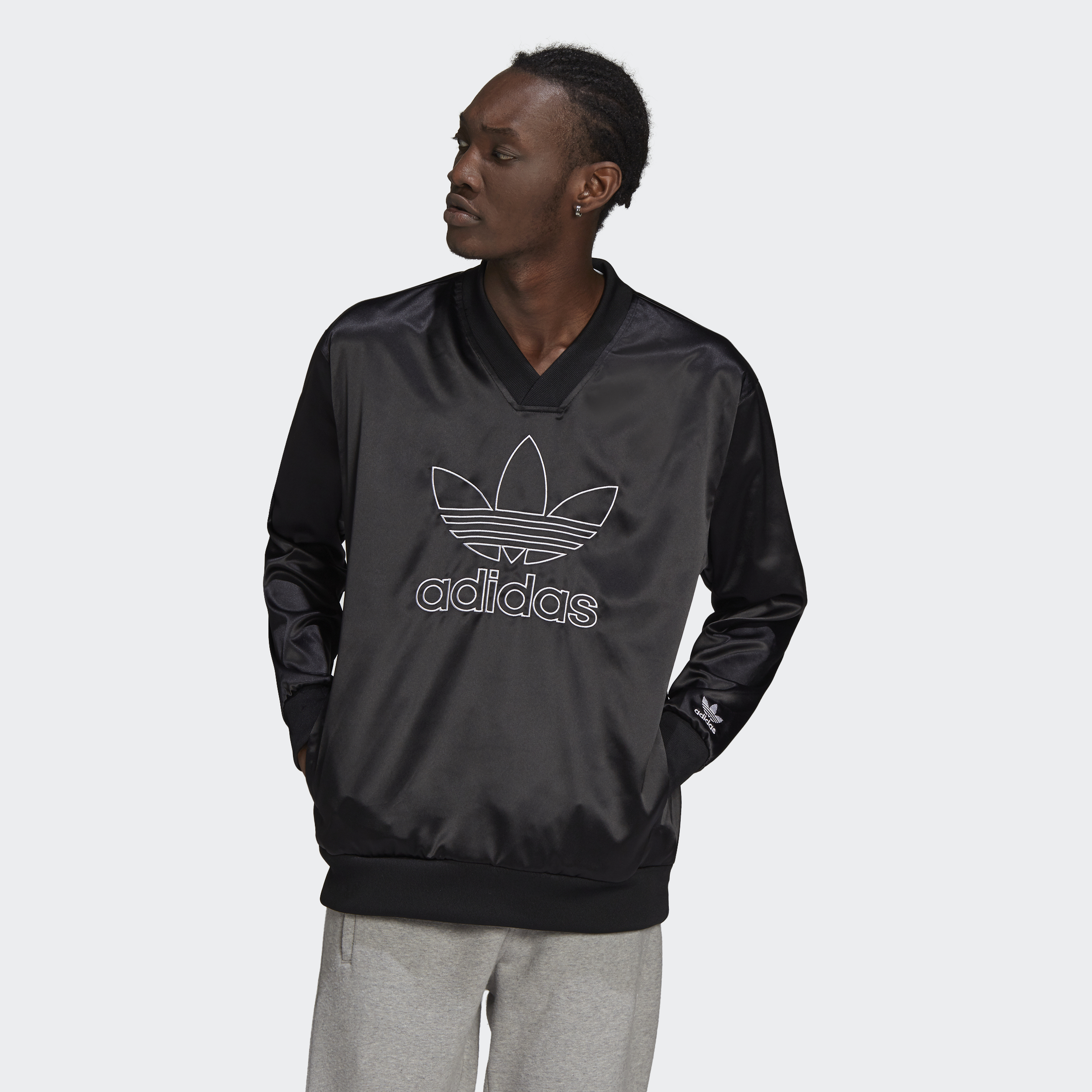 adidas Lifestyle Adicolor Classics Trefoil Satin V-Neck Jersey Men Black H11434