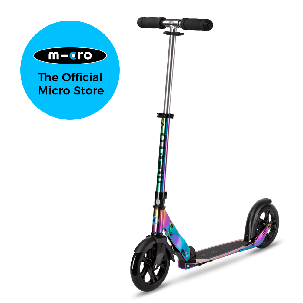 The Micro Classic is one of our best selling adult scooters, perfect for long distance riding. The extra large 200 mm wheels are designed to create a smooth glide and a comfortable ride. The deck design is unique, with placement lower than the axle, providing greater stability and an ergonomic position on the scooter. To avoid splashes on clothes, these scooters also come with a fender.