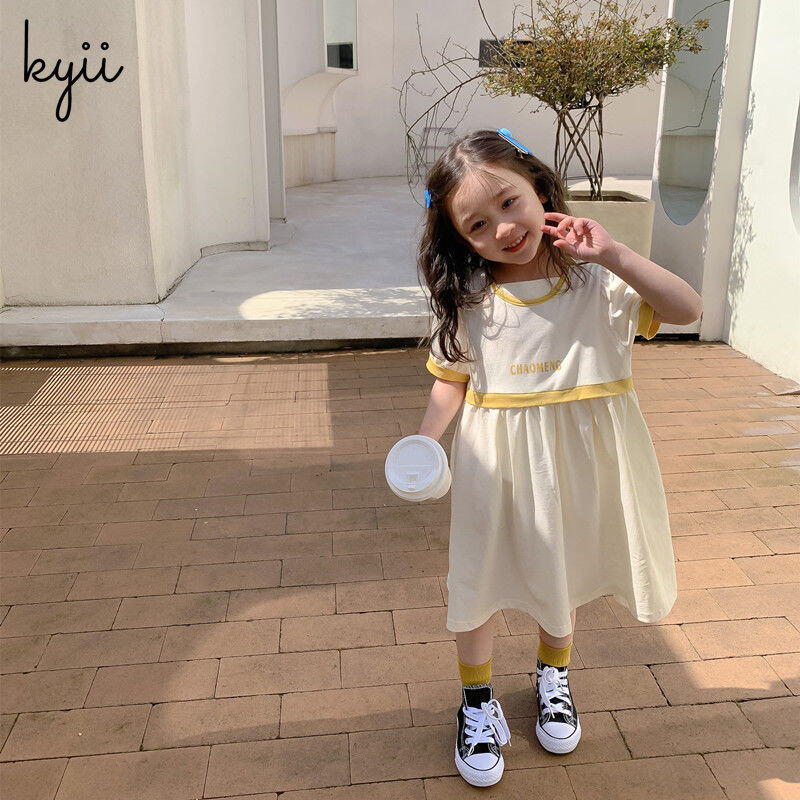 KYII Kids Girls Summer Round-neck Dress Casual Loose Dress kyii0064