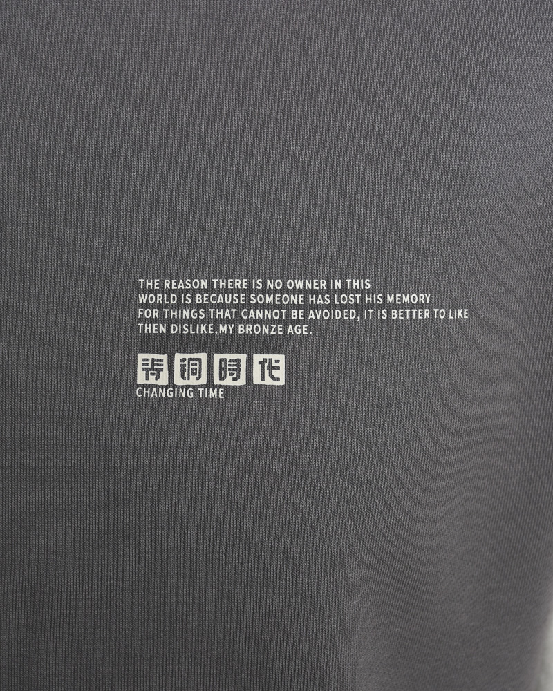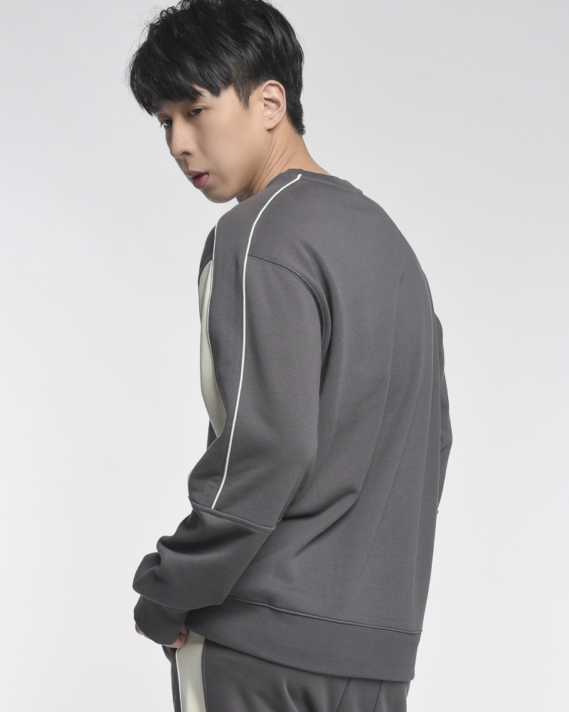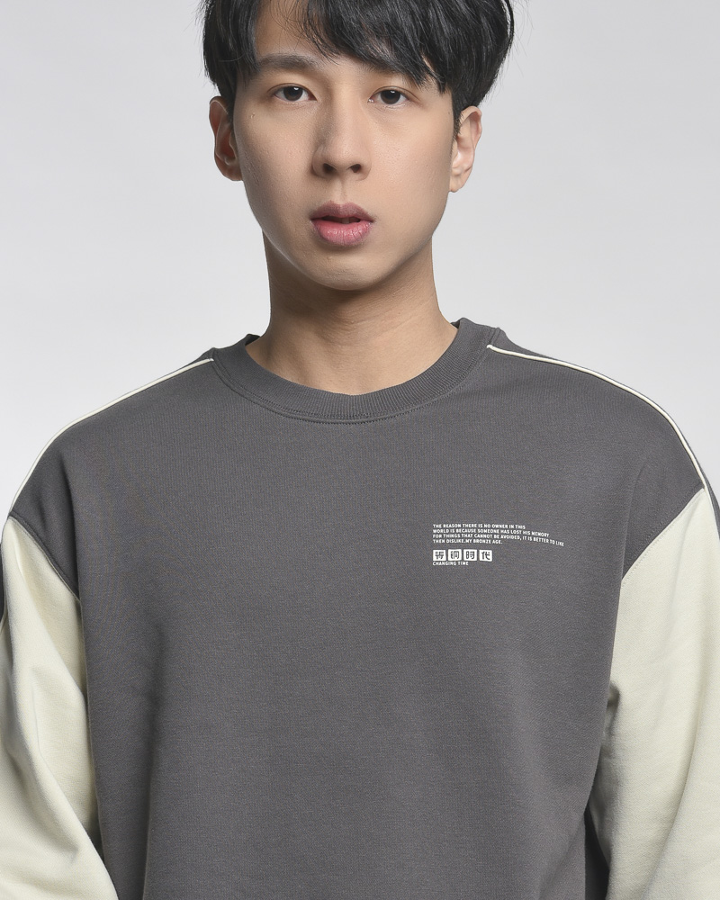 Yishion Men Oversized Colour-Block Long Sleeve Sweatshirt with Small Chest and Sleeve Print (Dk. Grey)