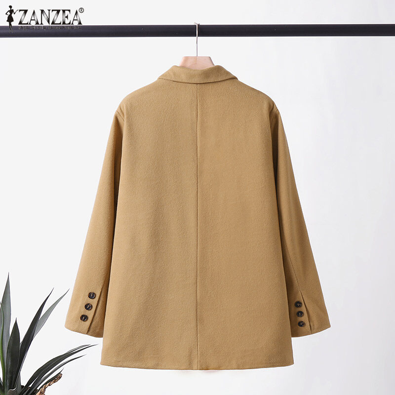[Clearance Sale]ZANZEA Womens Business Long Sleeve Buttons Up Coat Formal Opent Front Jacket Plain Blazer #3 CLE