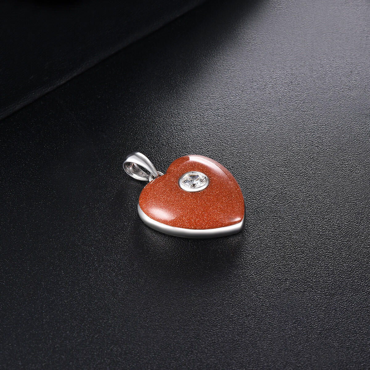 Heart Shape Gold Sand Stone Pendant Natural Gemstone for Women's Gift Real 925 Sterling Silver