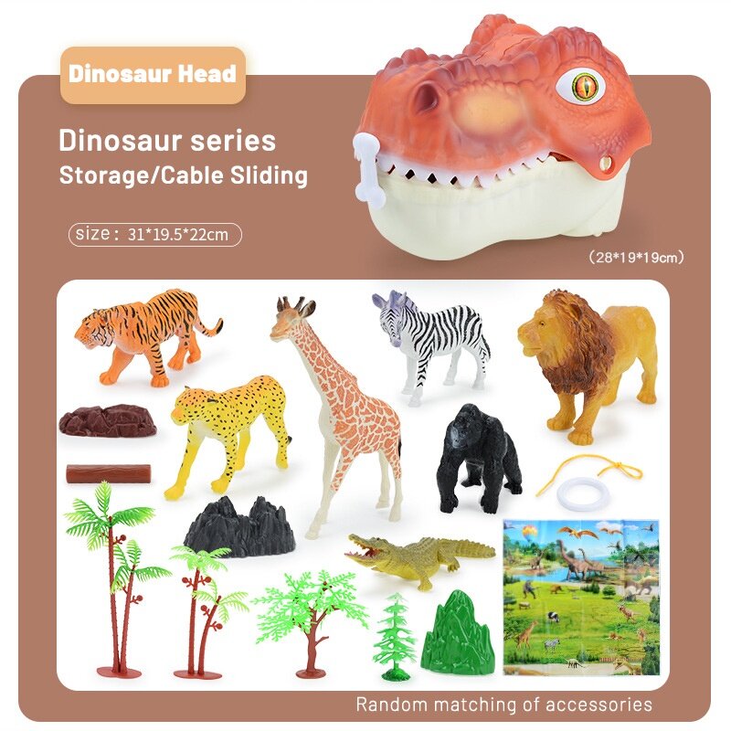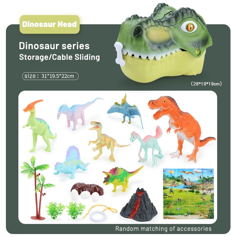 HYG Dinosaur head cover toy 16PCS Large Dinosaur Head Storage Toy Jurassic World Tyrannosaurus Rex Model Set Scene Can be a storage box kid‘s toy boy and girl gift