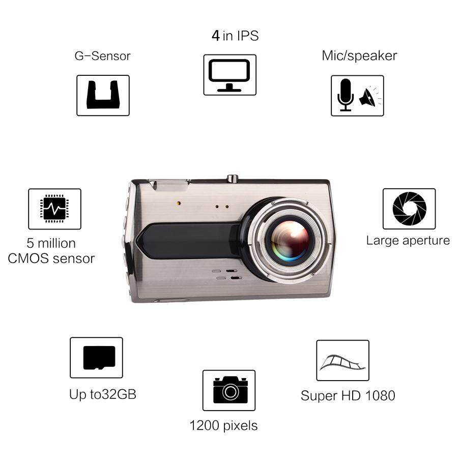 EKLEVA Car DVR Dash Cam Dual Lens Vehicle Camera Full HD 1080P 4 IPS Front+Rear Night Vision Video Recorder G-sensor Parking Monitor