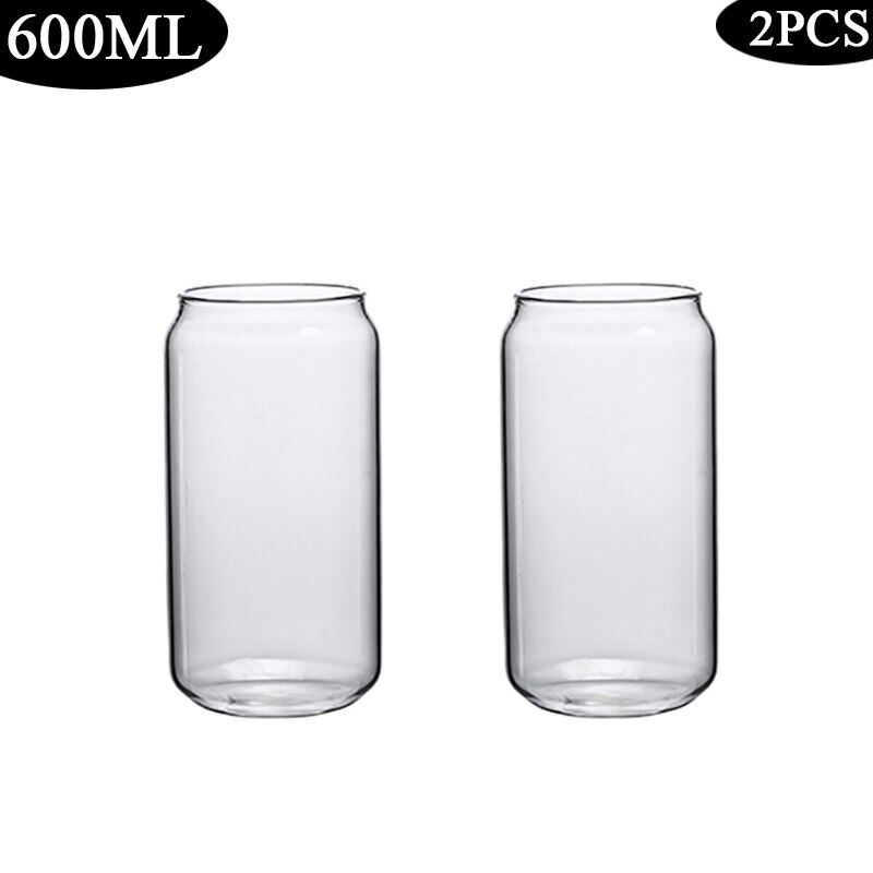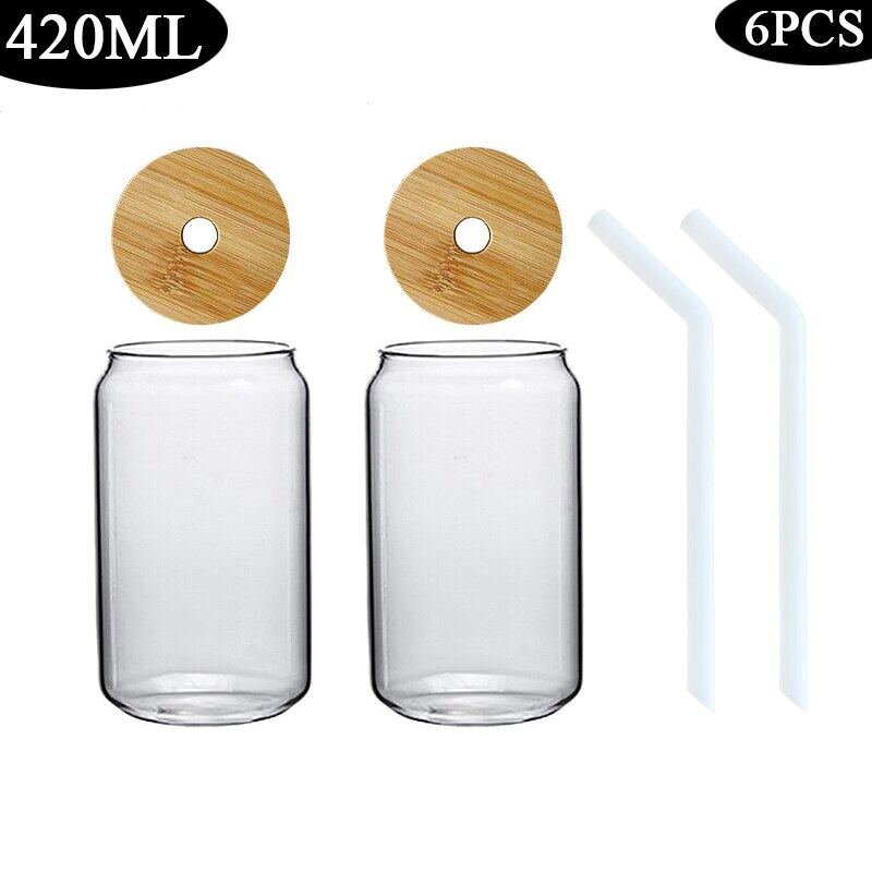 420/600ML 2-6PCS Transparent Glass Cup With Lid Straw Bubble Tea Cup Juice Coffee Beer Can Milk Mocha Breakfast Mug Drinkware